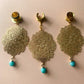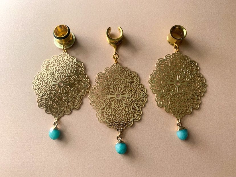 2g (6mm) - 1 5/16" (34mm) Large 18k Gold Filigree w/Blue Jade Saddles Drop Earrings Gauges/Earplugs Plugs.