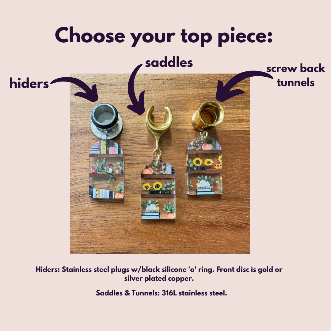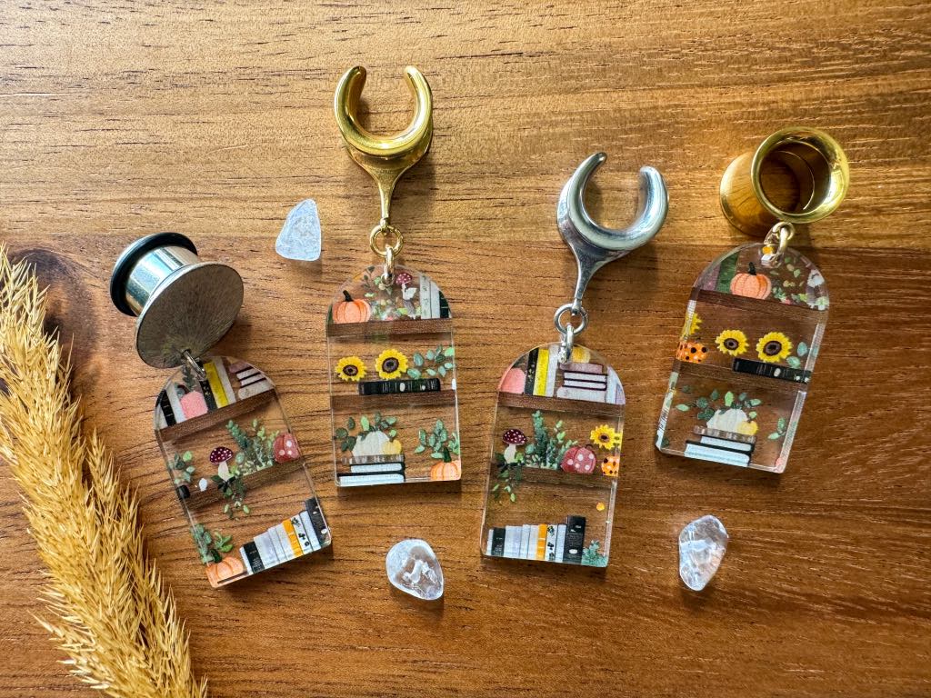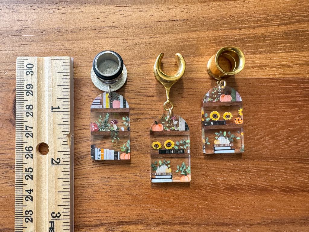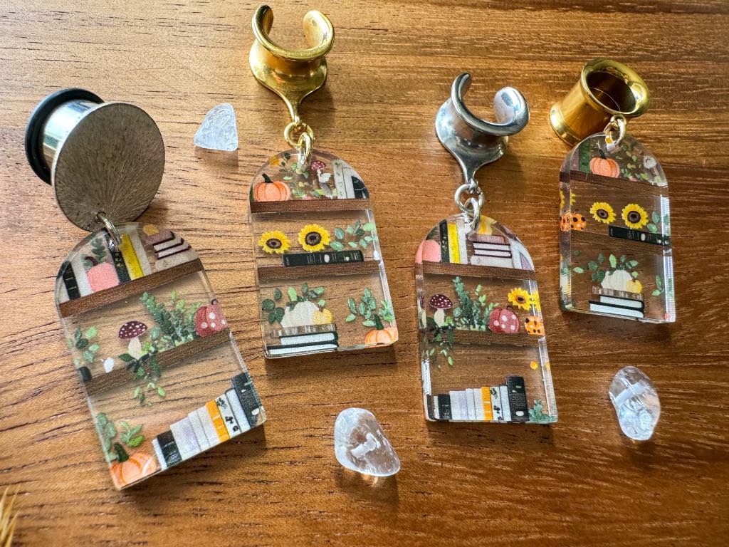 6g (4mm) - 1 3/16 (30mm) Acrylic Autumn Bookshelf Hiders Drop Dangle Earrings Gauges/Earplugs Plugs.