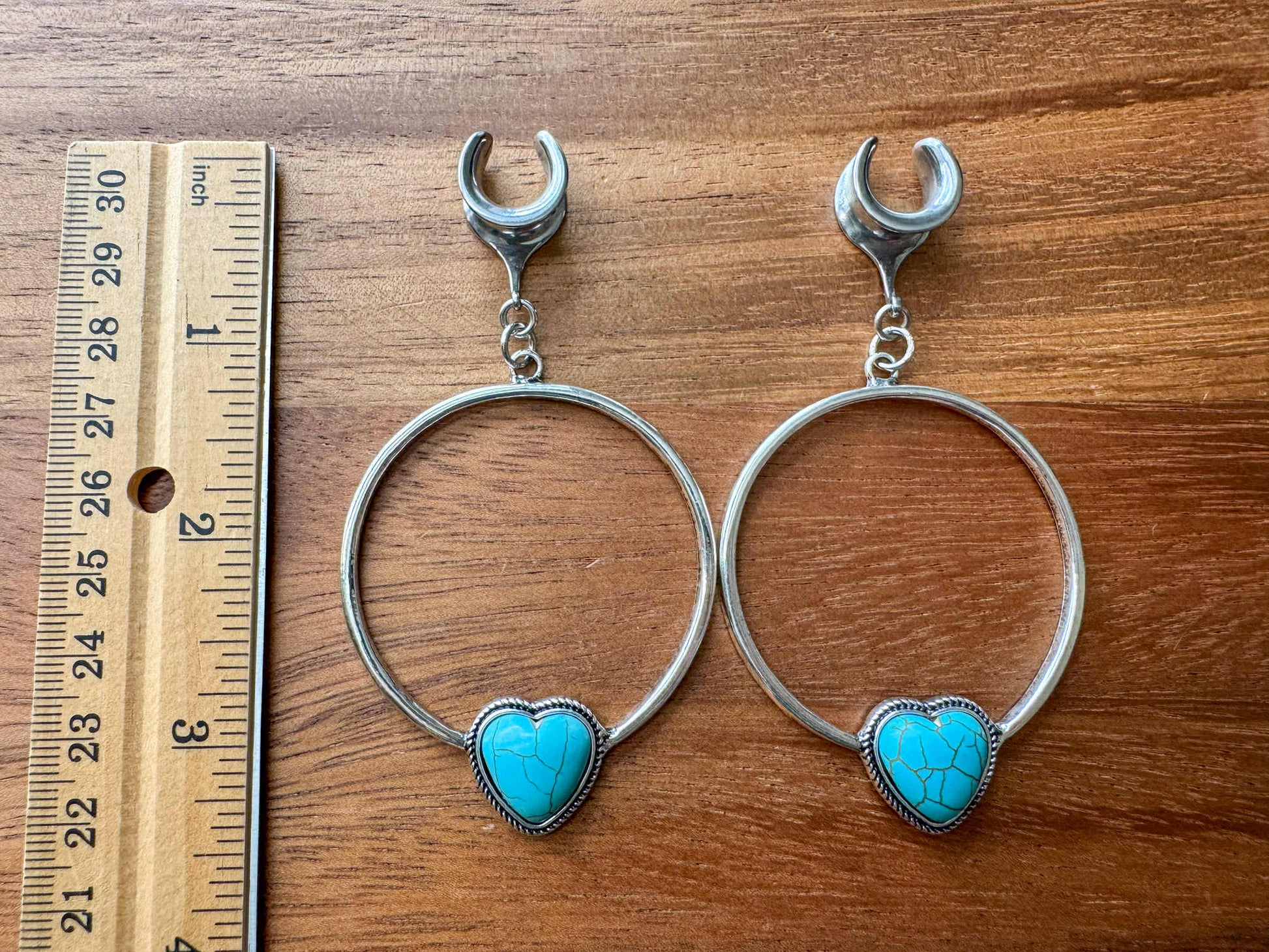 2g (6mm) - 1 3/16 (30mm) Faux Turquoise Heart Hoops Saddles Earrings Gauges Plugs.