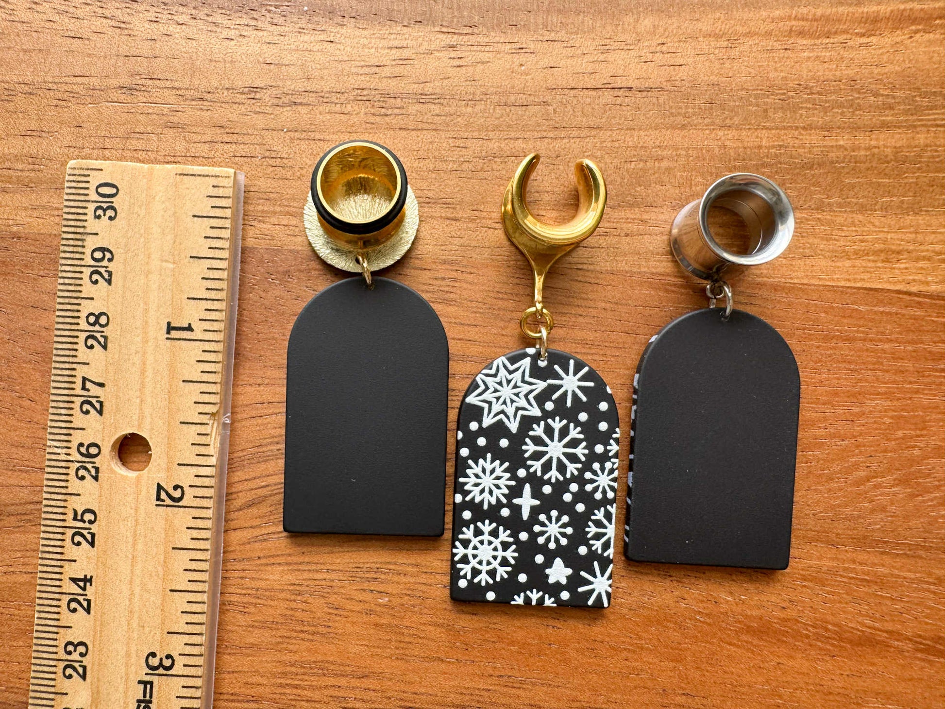 6g (4mm) - 1 3/16 (30mm) Black and White Snowy Skies Hiders Drop Dangle Earrings Gauges/Earplugs Plugs.