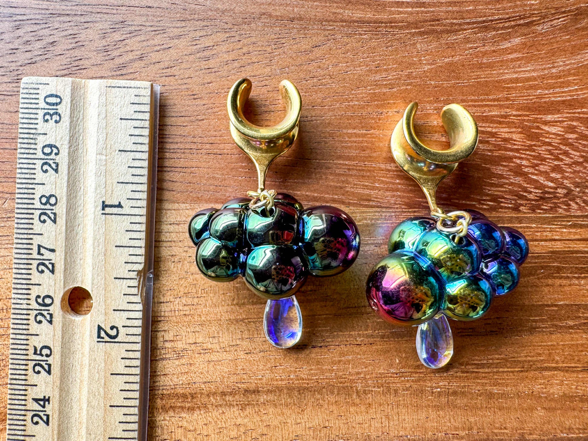 2g (6mm) - 1 3/16 (30mm) Gold Black Oil Slick Raincloud Saddles Drop Dangle Earrings Gauges/Earplugs Plugs.