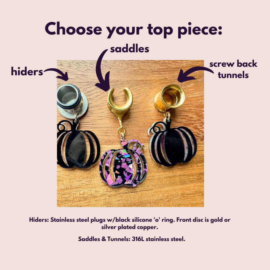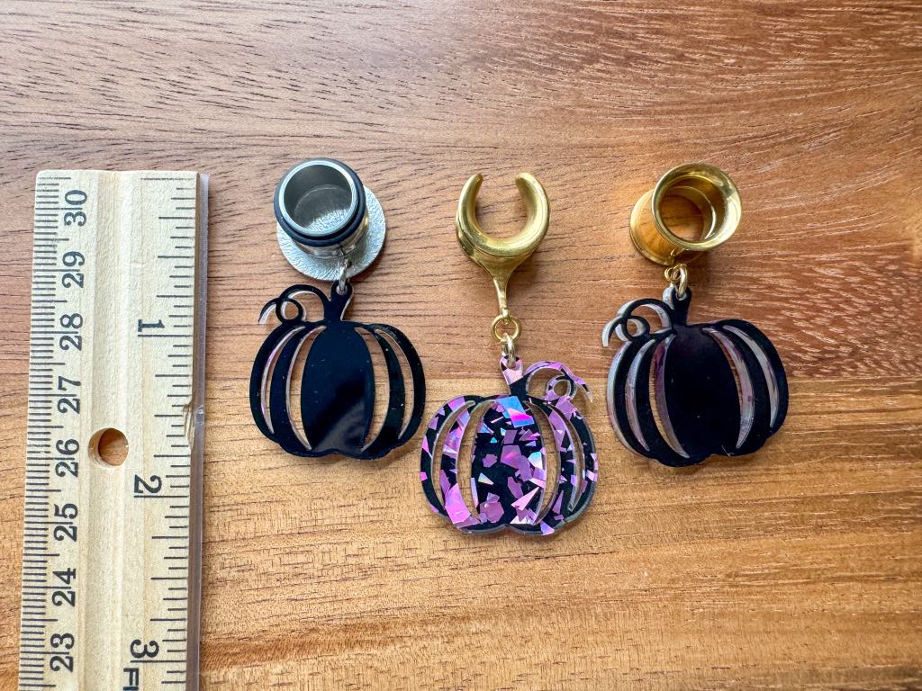 6g (4mm) - 1 3/16 (30mm) Confetti Pumpkins Saddles Hiders Drop Dangle Earrings Gauges/Earplugs Plugs.