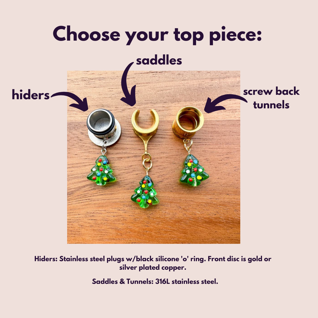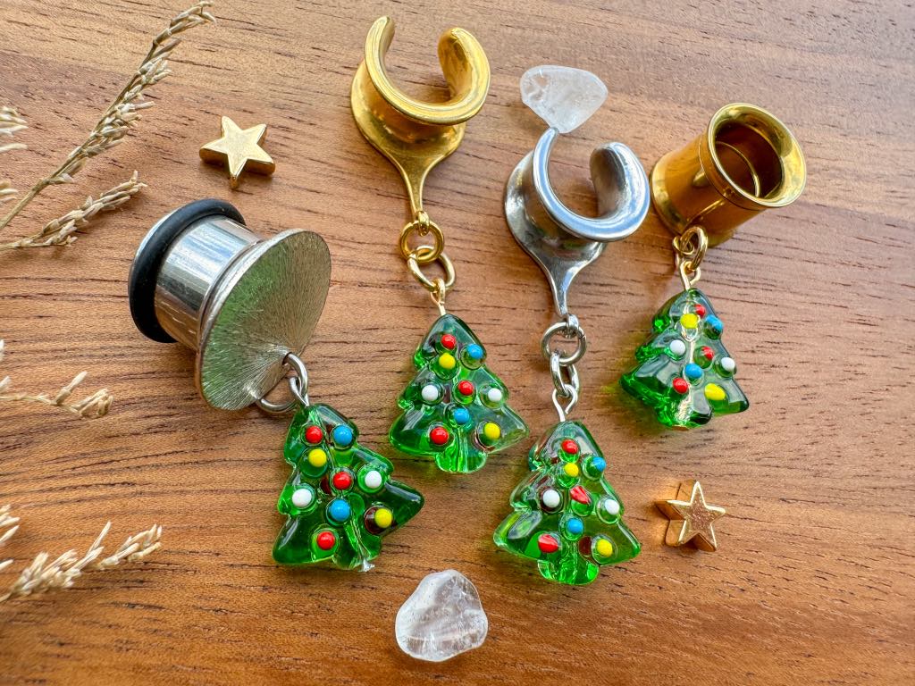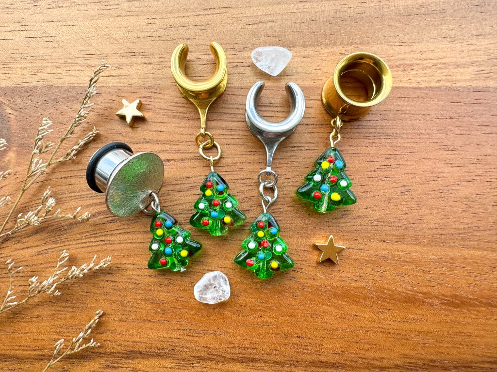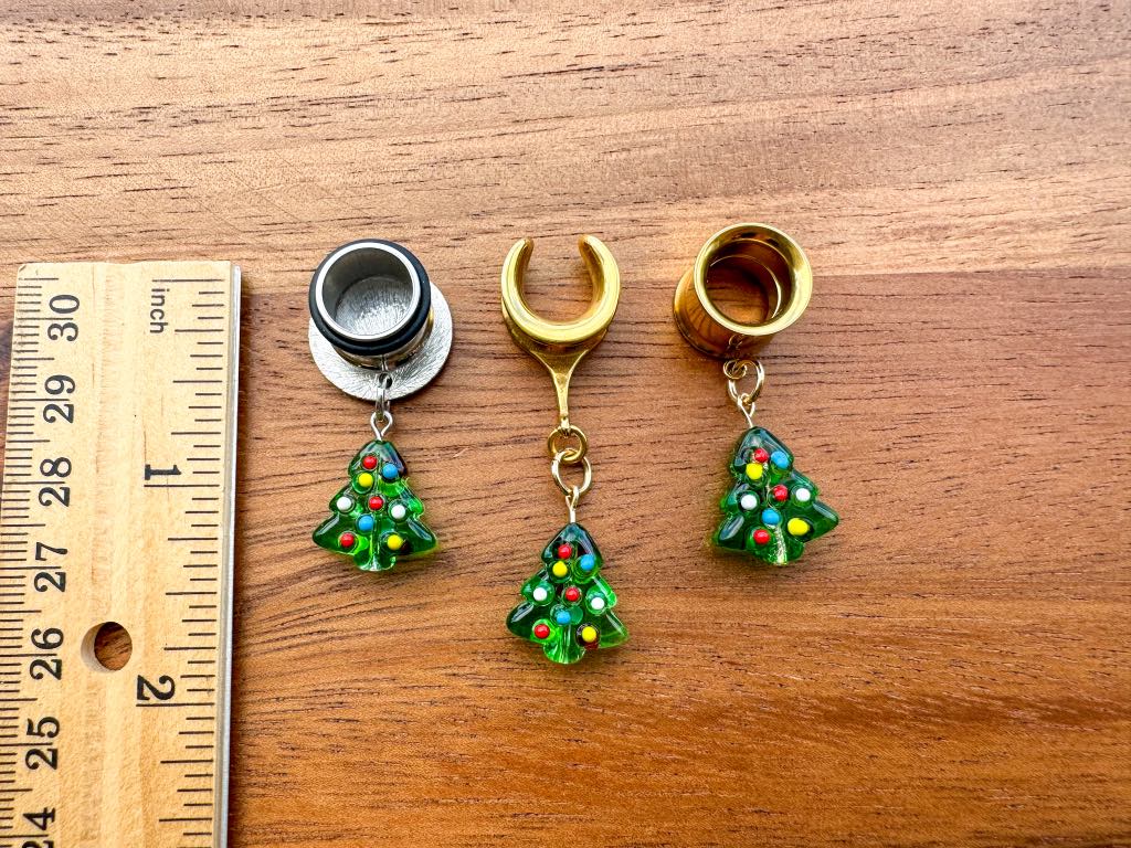 6g (4mm) - 1 3/16 (30mm) Dainty Glass Christmas Trees Saddles Hiders Drop Dangle Earrings Gauges/Earplugs Plugs