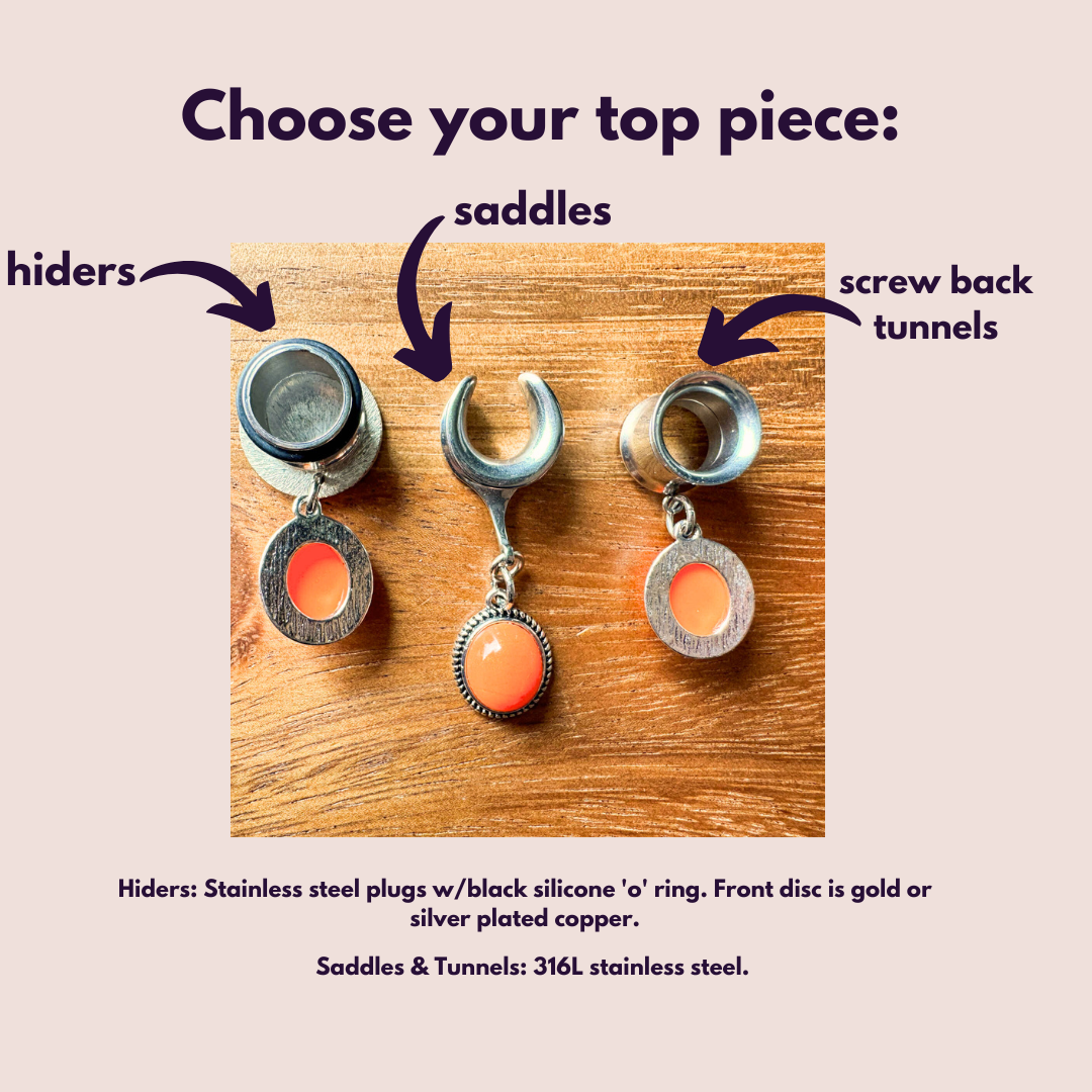 6g (4mm) - 1 3/16 (30mm) Faux Orange Gems Saddles Drop Dangle Earrings Gauges/Earplugs Plugs.