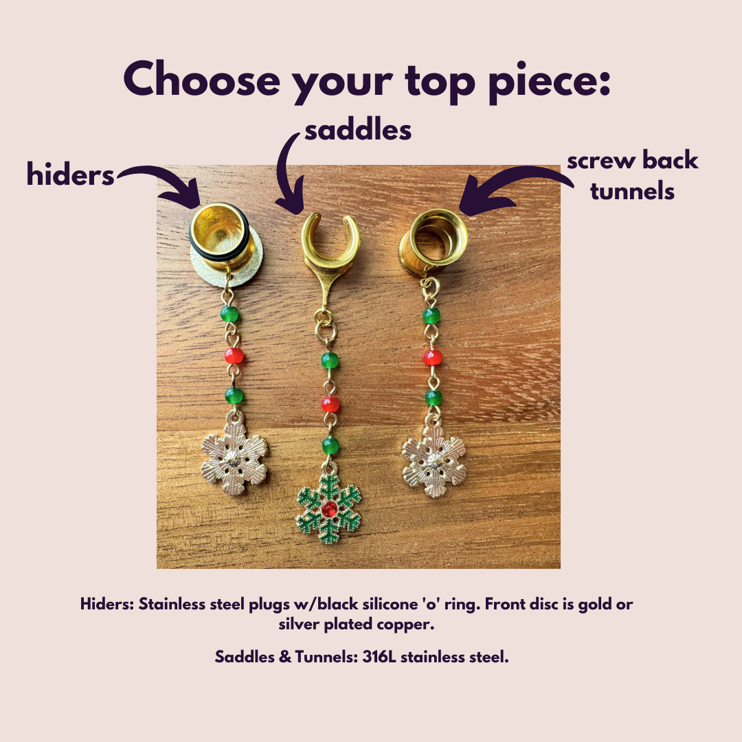 6g (4mm) - 1 5/16" (34mm) Gold Beaded Snowflakes Hiders Saddles Dangle Earrings Gauges Plugs.