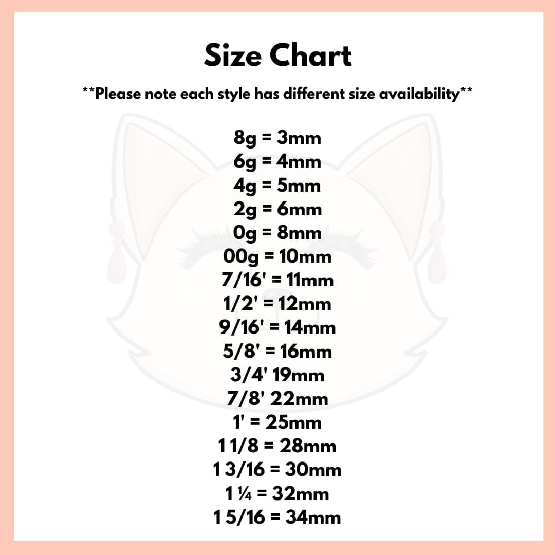 Regarding sizing: Saddles generally run bigger than expected. Why? The size you choose refers to the wearable (inner) area of the saddle where your lobe rests. However, saddles have larger outer widths and heights than typical plugs to help them stay in place- very similar to double flared plugs. See second photo for reference. We ask you keep this in mind when selecting a size as these larger outer areas may be a challenge for some to insert properly. Some may prefer a more fitted look or are intending on continuing their stretching journey while others may want a more looser fit, especially at larger lobe sizes.