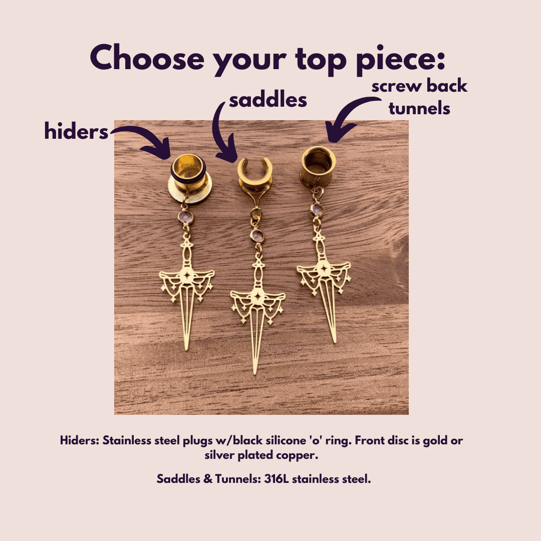 Regarding sizing: Saddles generally run bigger than expected. Why? The size you choose refers to the wearable (inner) area of the saddle where your lobe rests. However, saddles have larger outer widths and heights than typical plugs to help them stay in place- very similar to double flared plugs. See second photo for reference. We ask you keep this in mind when selecting a size as these larger outer areas may be a challenge for some to insert properly. Some may prefer a more fitted look or are intending on continuing their stretching journey while others may want a more looser fit, especially at larger lobe sizes.