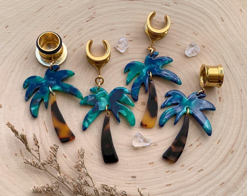 6g (4mm) - 1 3/16 (30mm) Palm Tree Acetate Lightweight Hoop Drop Dangle Earrings Gauges/Earplugs Hider Plugs.