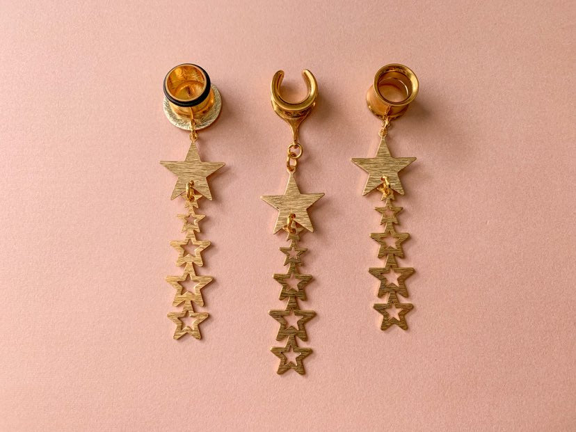 8g (3mm) - 1 3/16 (30mm) Gold Shooting Stars Lightweight Drop Dangle Earrings Gauges/Earplugs Hider Plugs.