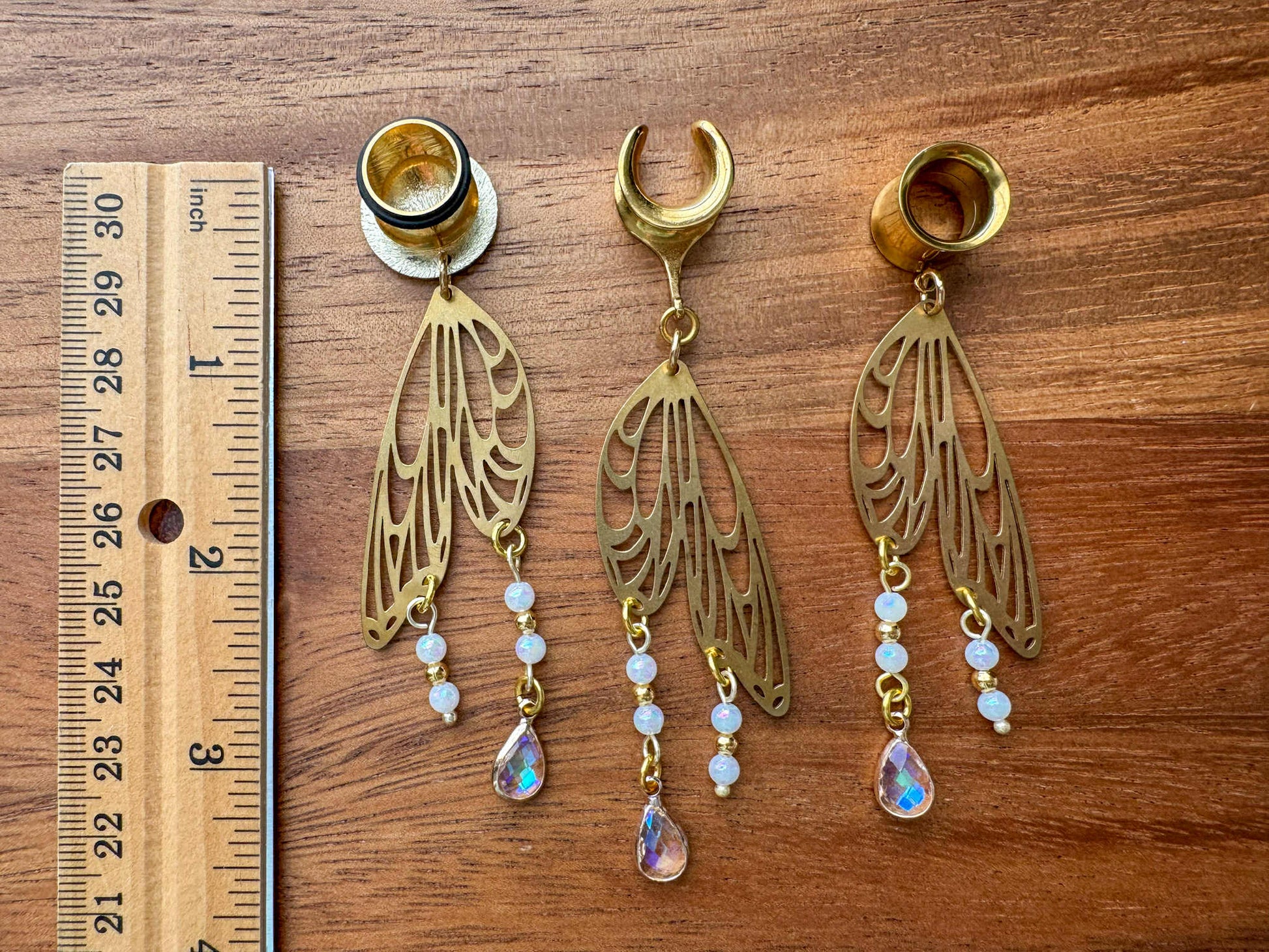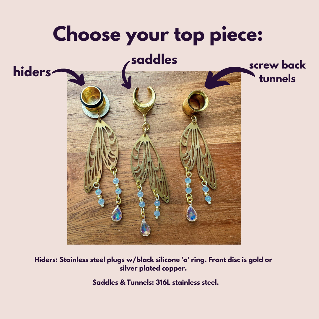 6g (4mm) - 1 5/16" (34mm) Golden Mystical Wings Saddles Hiders Dangle Earrings Gauges Plugs.