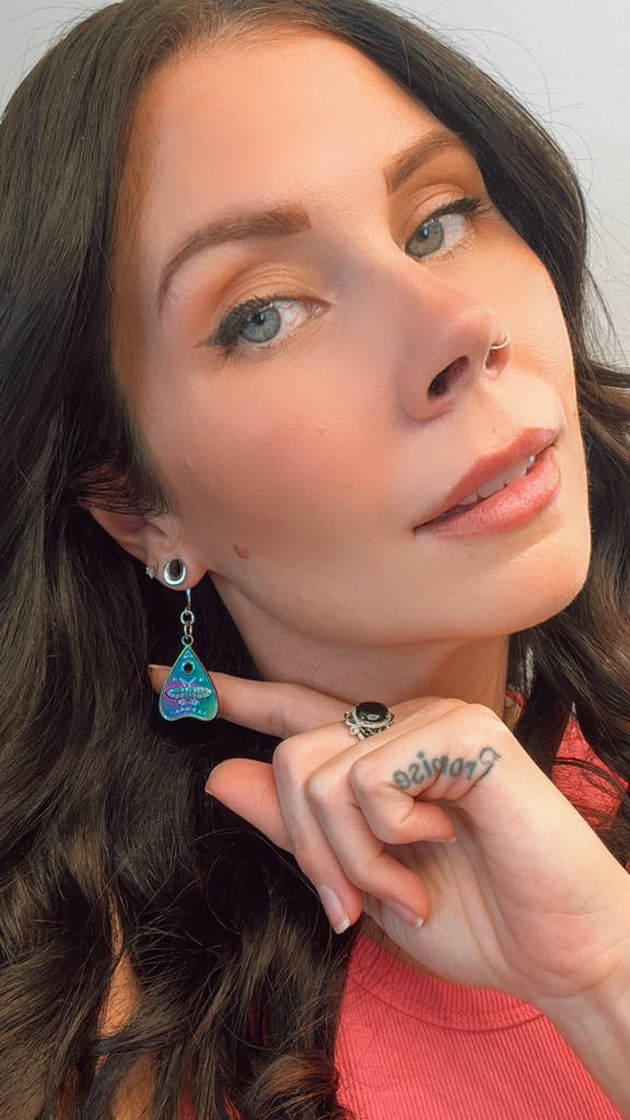 -Features unique rainbow metal planchette with moth and moon detailing.