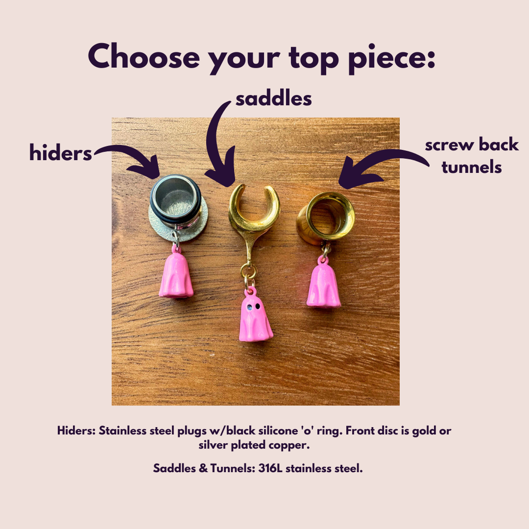 6g (4mm) - 1 3/16 (30mm) Mini Pink Ghosts Drop Dangle Earrings Gauges/Earplugs Plugs.