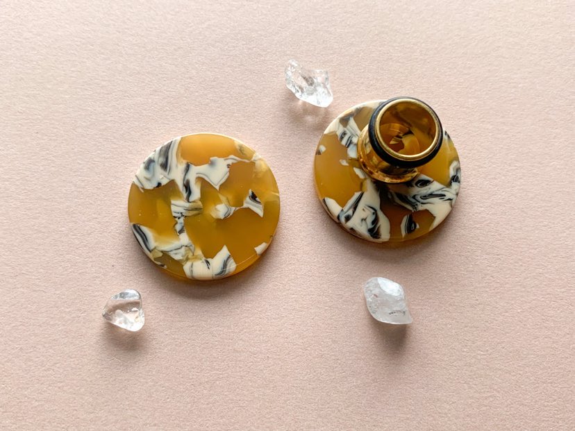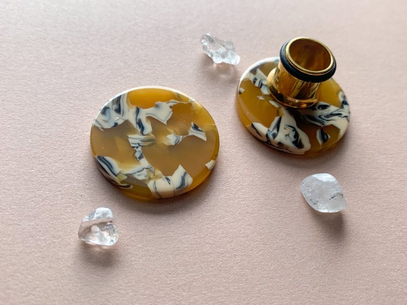 The plugs themselves are stainless steel w/black silicone 'o' ring and disc is acetate acrylic.