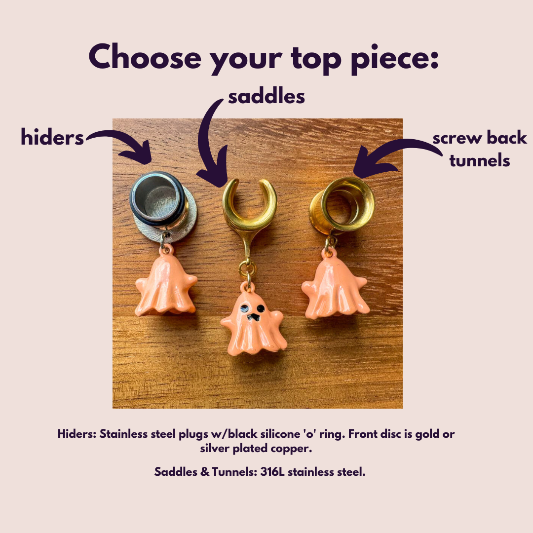 6g (4mm) - 1 3/16 (30mm) Pastel Orange Ghosts Drop Dangle Earrings Gauges/Earplugs Hider Plugs.
