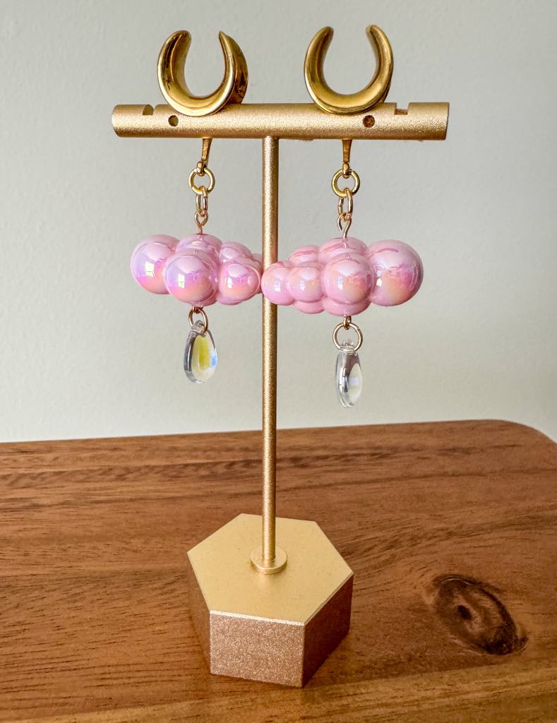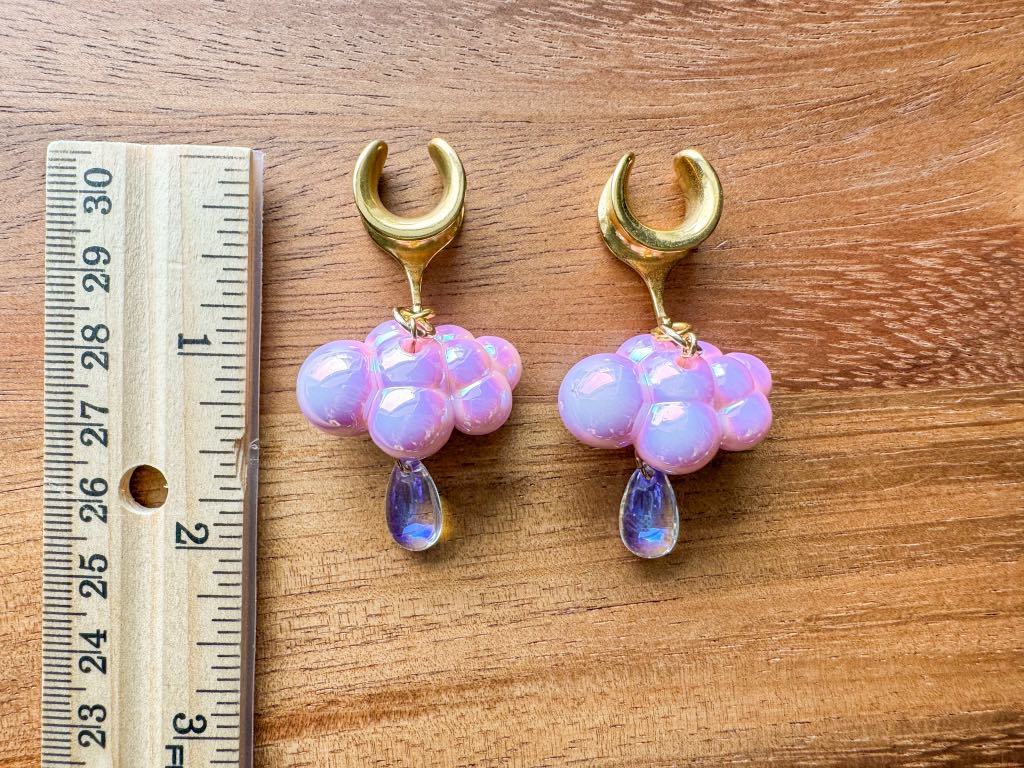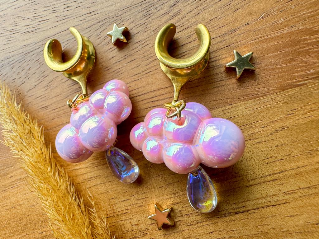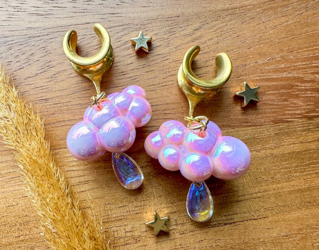 2g (6mm) - 1 3/16 (30mm) Pink Iridescent Raincloud Saddles Drop Dangle Earrings Gauges/Earplugs Plugs