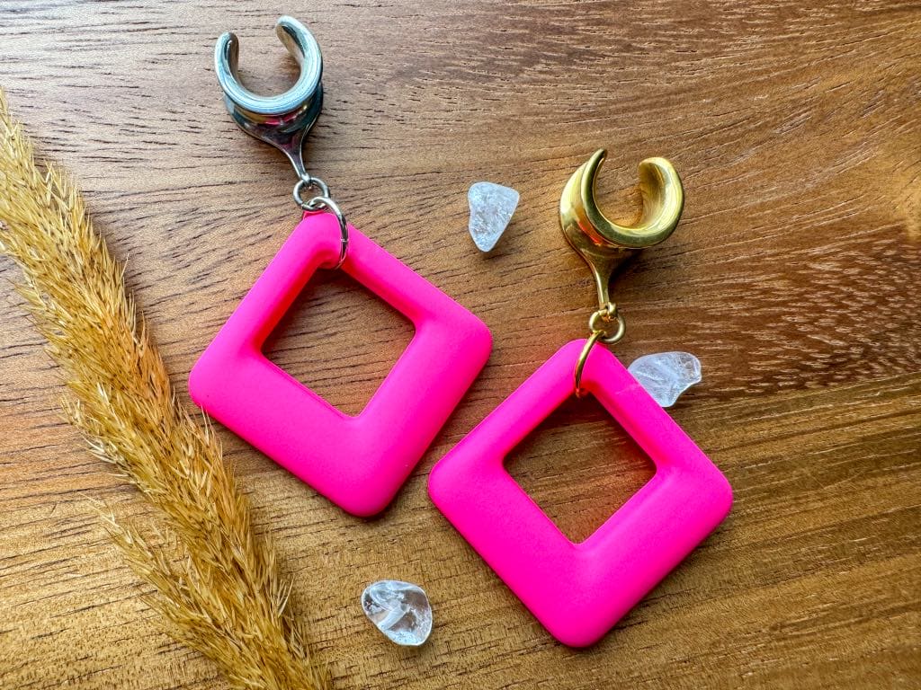 2g (6mm) - 1 3/16 (30mm) Pink "Neon Dreams" Silver or Gold Saddles Drop Dangle Earrings Gauges/Earplugs Plugs.