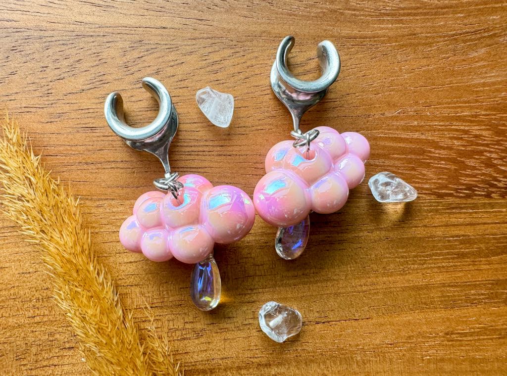 2g (6mm) - 1 3/16 (30mm) Pink Iridescent Raincloud Saddles Drop Dangle Earrings Gauges/Earplugs Plugs