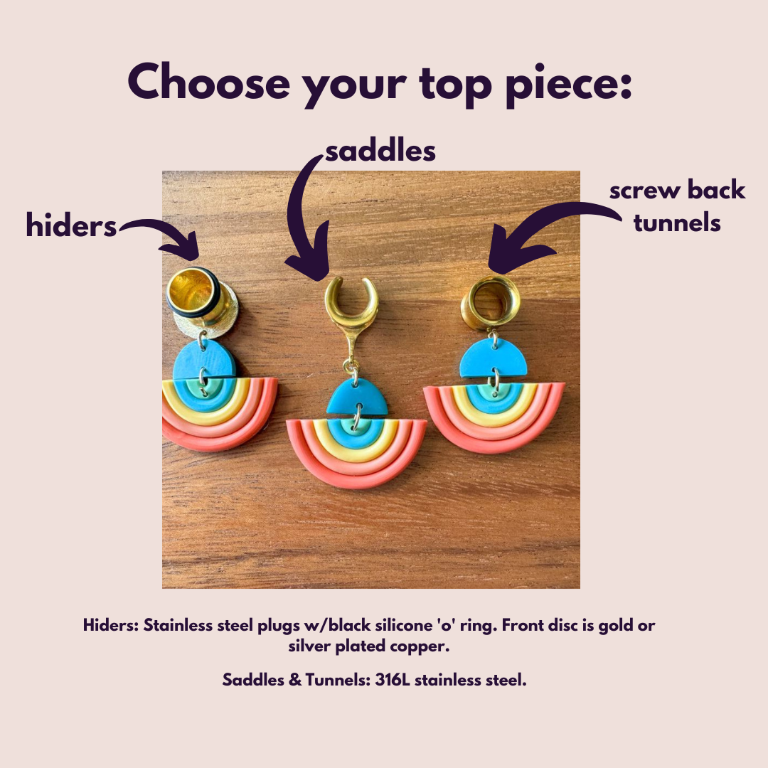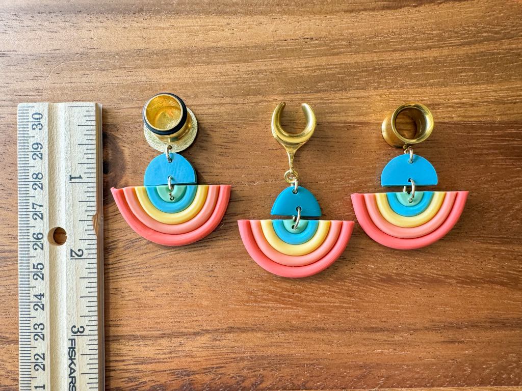8g (3mm) - 1 3/16 (30mm) Rainbow Pride Polymer Clay Earrings Drop Dangle Gauges/Earplugs Hider Plugs.