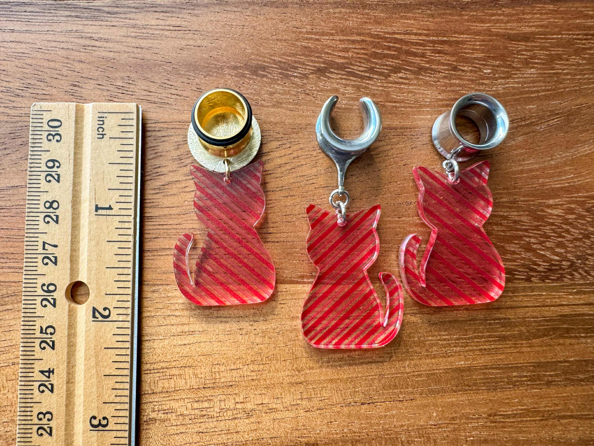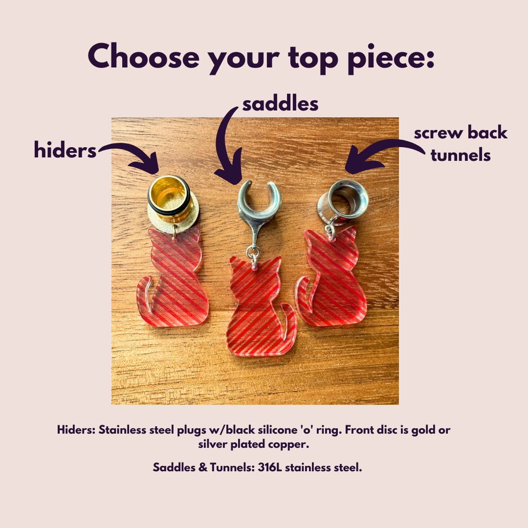 6g (4mm) - 1 5/16" (34mm) Red Striped Cats Saddles Hiders Gauges Tunnels Plugs.