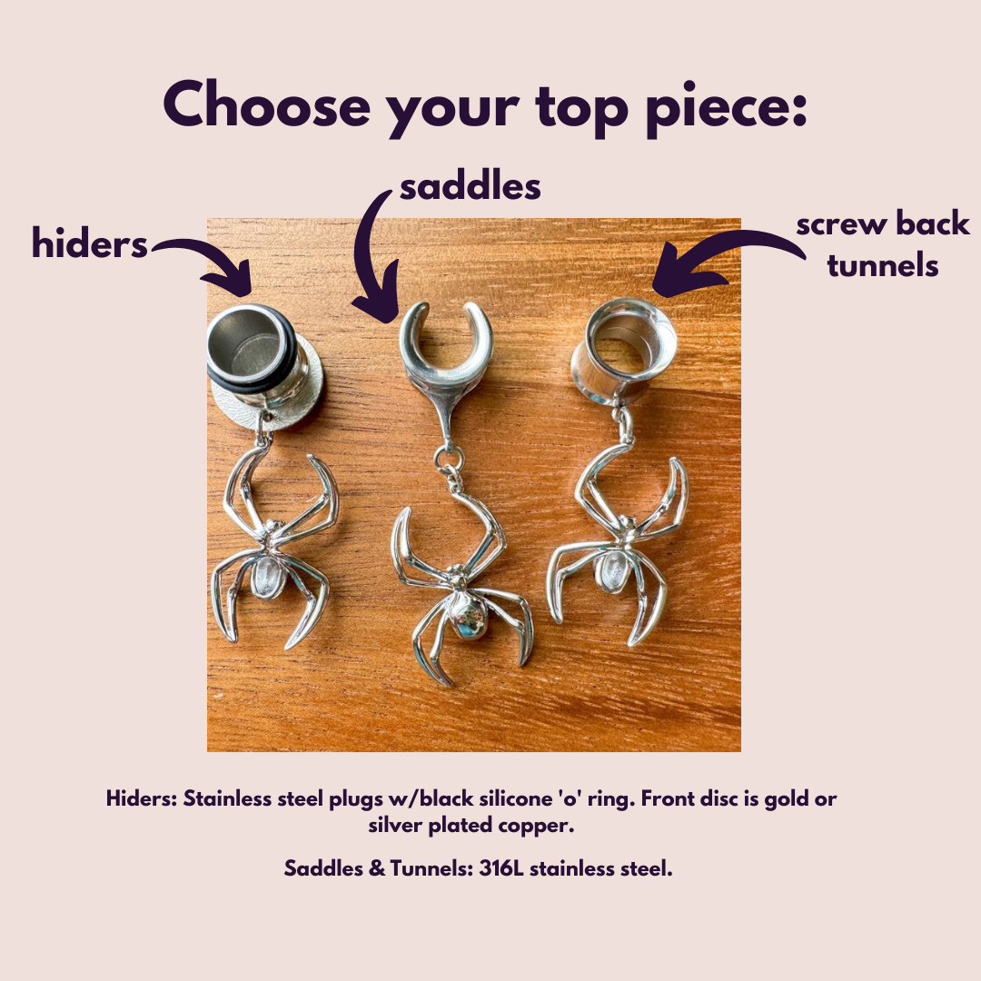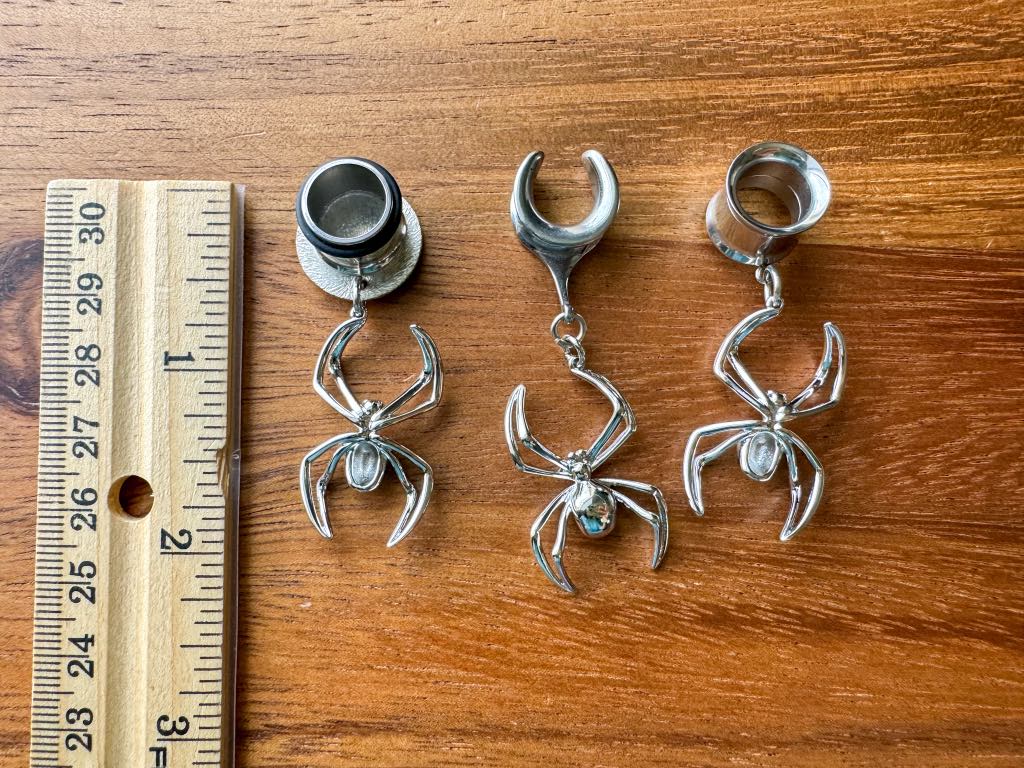 6g (4mm) - 1 3/16 (30mm) Rhodium Plated Orb Weaver Drop Dangle Earrings Gauges/Earplugs Hider Plugs.