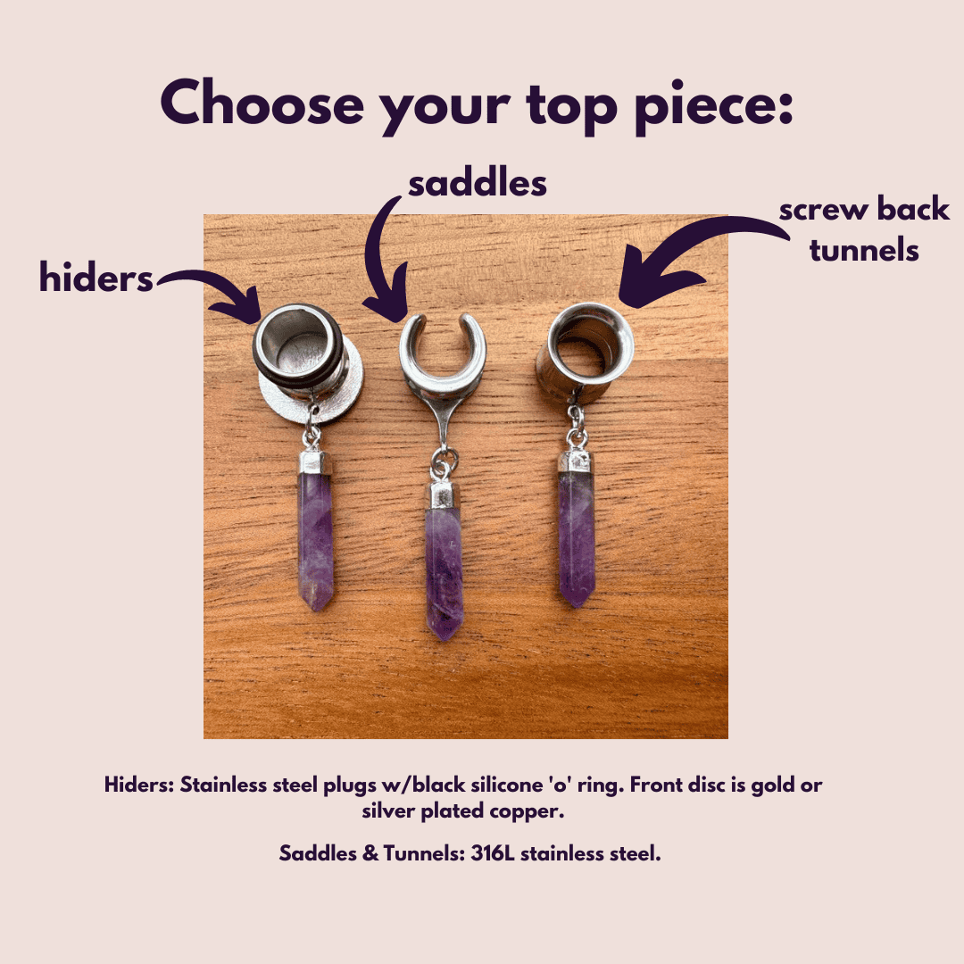 6g (4mm) - 1 3/16 (30mm) Silver Amethyst Spike Saddles Drop Dangle Earrings Gauges/Earplugs Plugs.