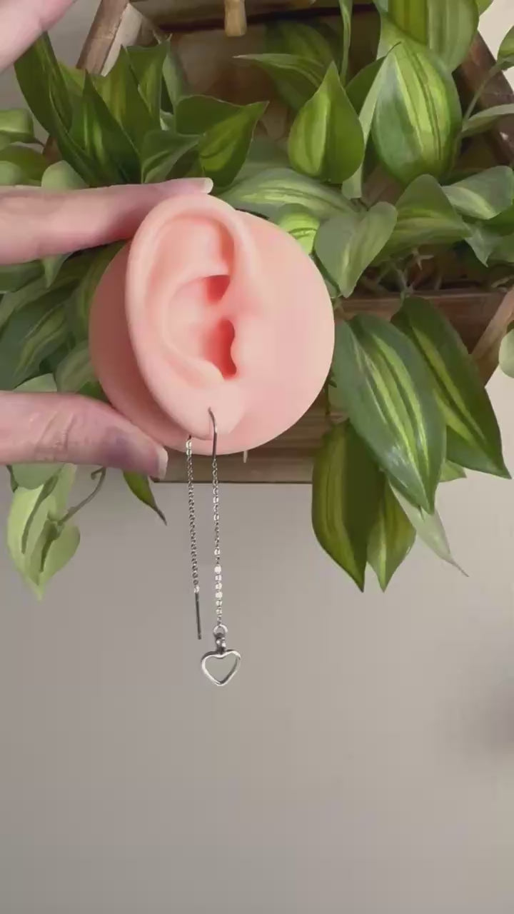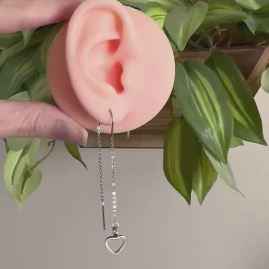 Silver Heart Threader Earrings.