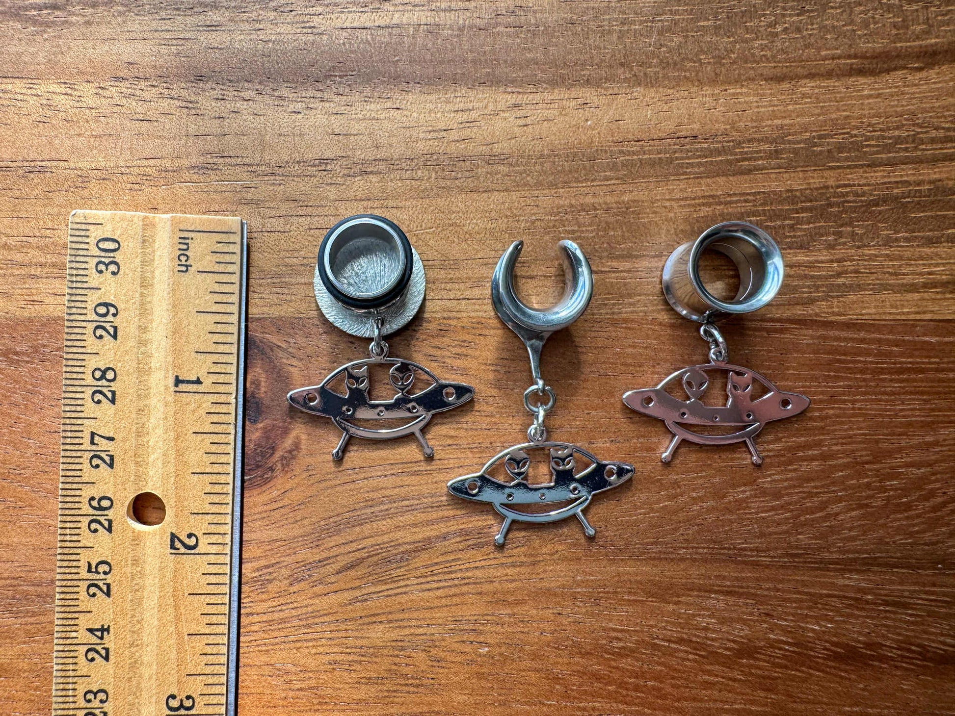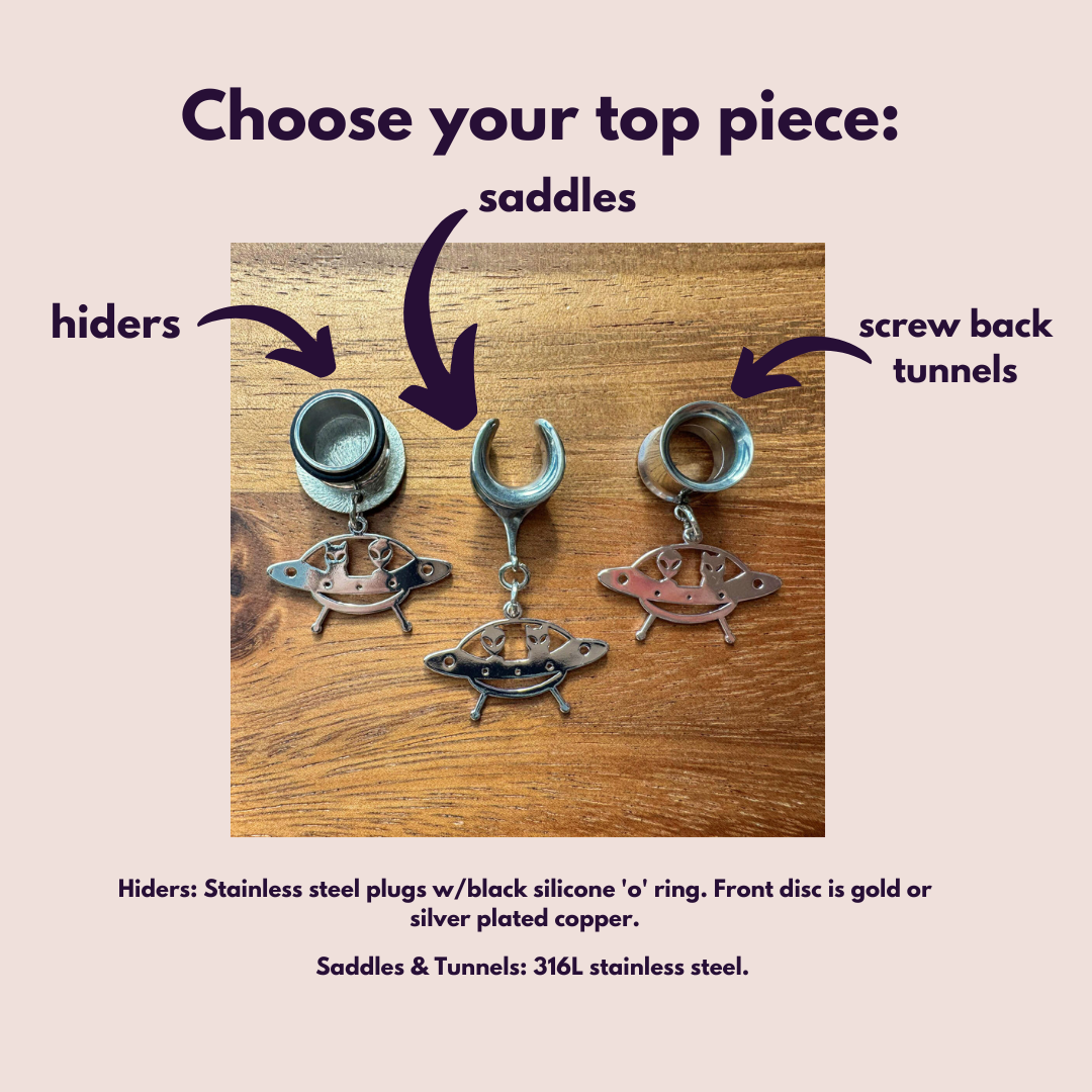 6g (4mm) - 1 5/16" (34mm) Small Cat & Alien UFO Saddles Dangle Earrings Gauges Plugs.