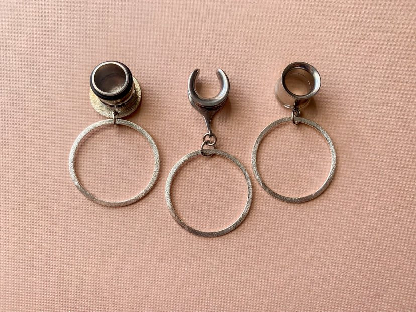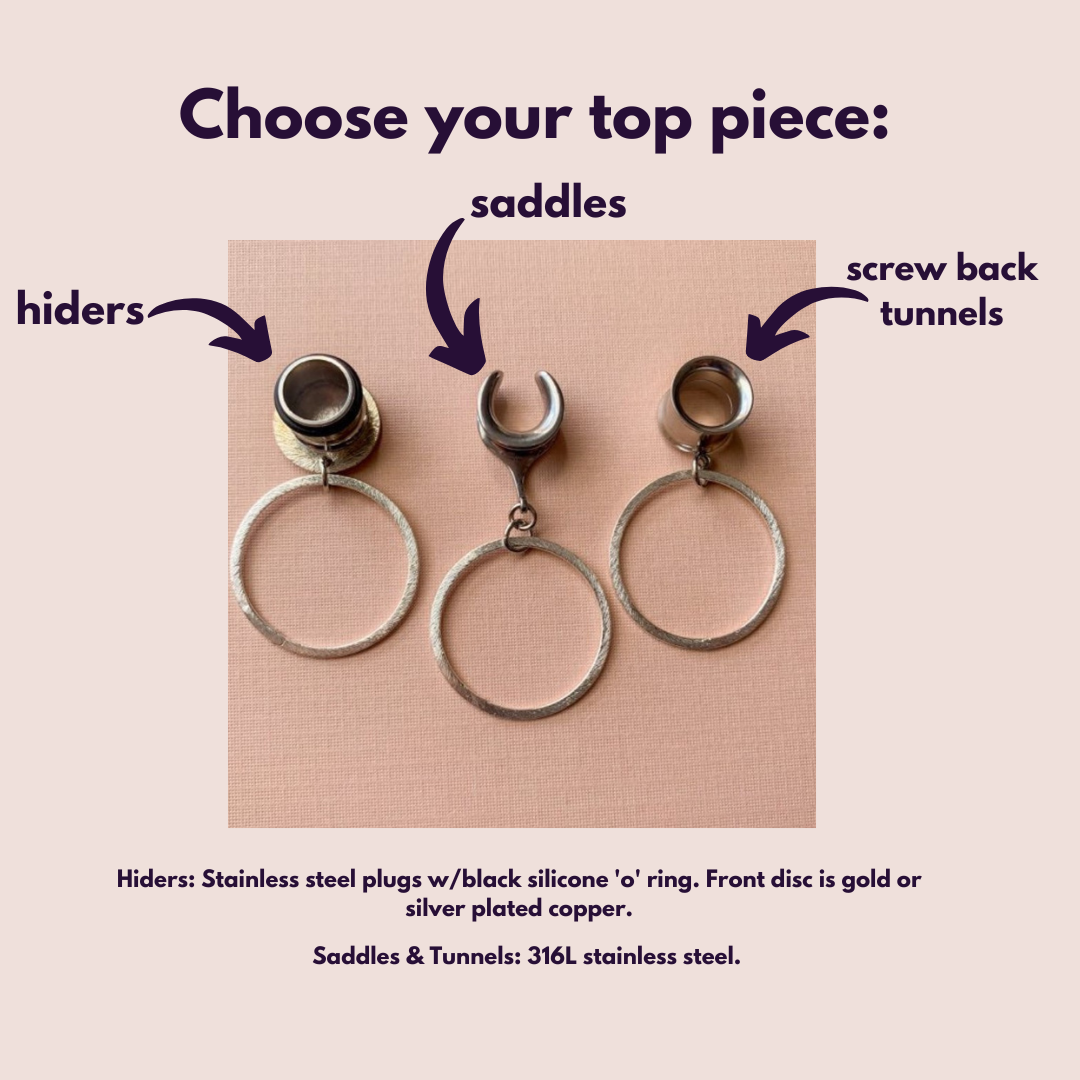 Regarding sizing: Saddles generally run bigger than expected. Why? The size you choose refers to the wearable (inner) area of the saddle where your lobe rests. However, saddles have larger outer widths and heights than typical plugs to help them stay in place- very similar to double flared plugs. See second photo for reference. We ask you keep this in mind when selecting a size as these larger outer areas may be a challenge for some to insert properly. Some may prefer a more fitted look or are intending on continuing their stretching journey while others may want a more looser fit, especially at larger lobe sizes.