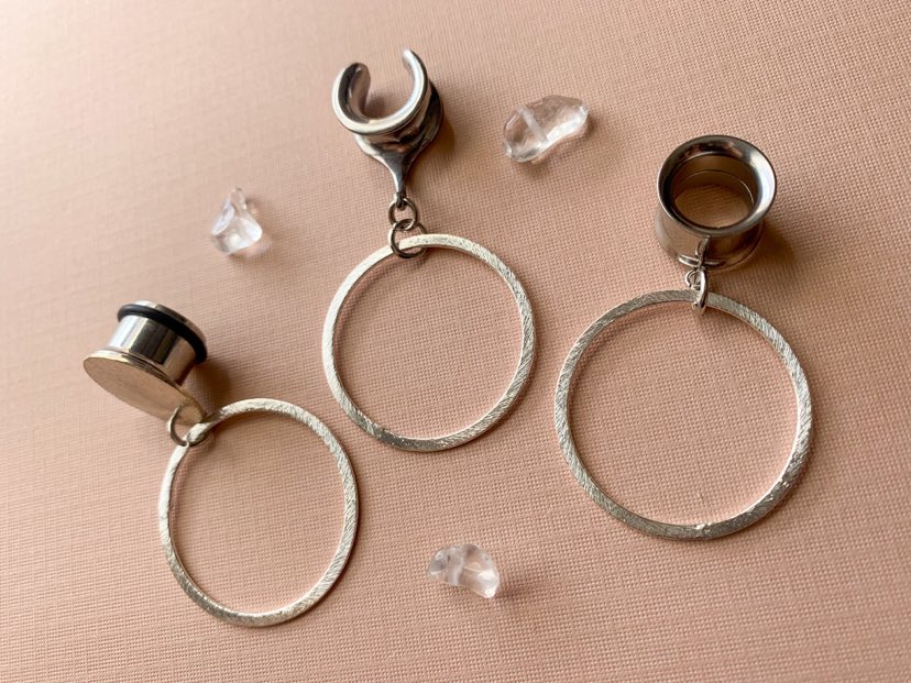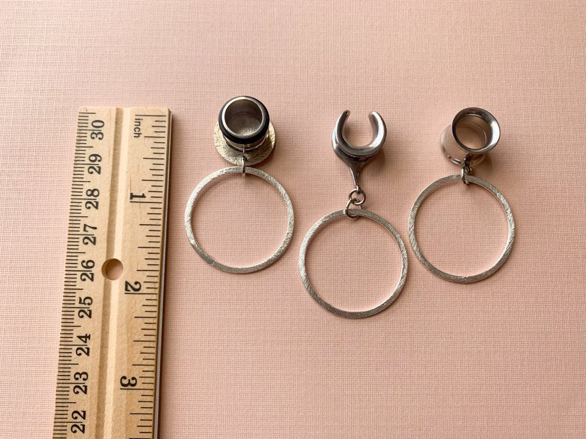 8g (3mm) - 1 3/16 (30mm) Small Silver Hoop Earrings Lightweight Drop Dangle Gauges/Earplugs Hider Plugs.