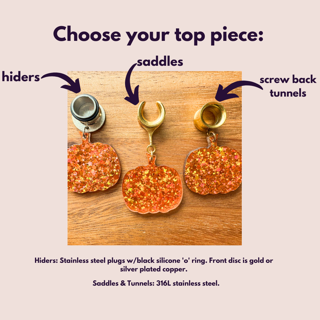 6g (4mm) - 1 3/16 (30mm) Acrylic Glittery Pumpkins Dangle Earrings Gauges/Earplugs Hider Plugs.