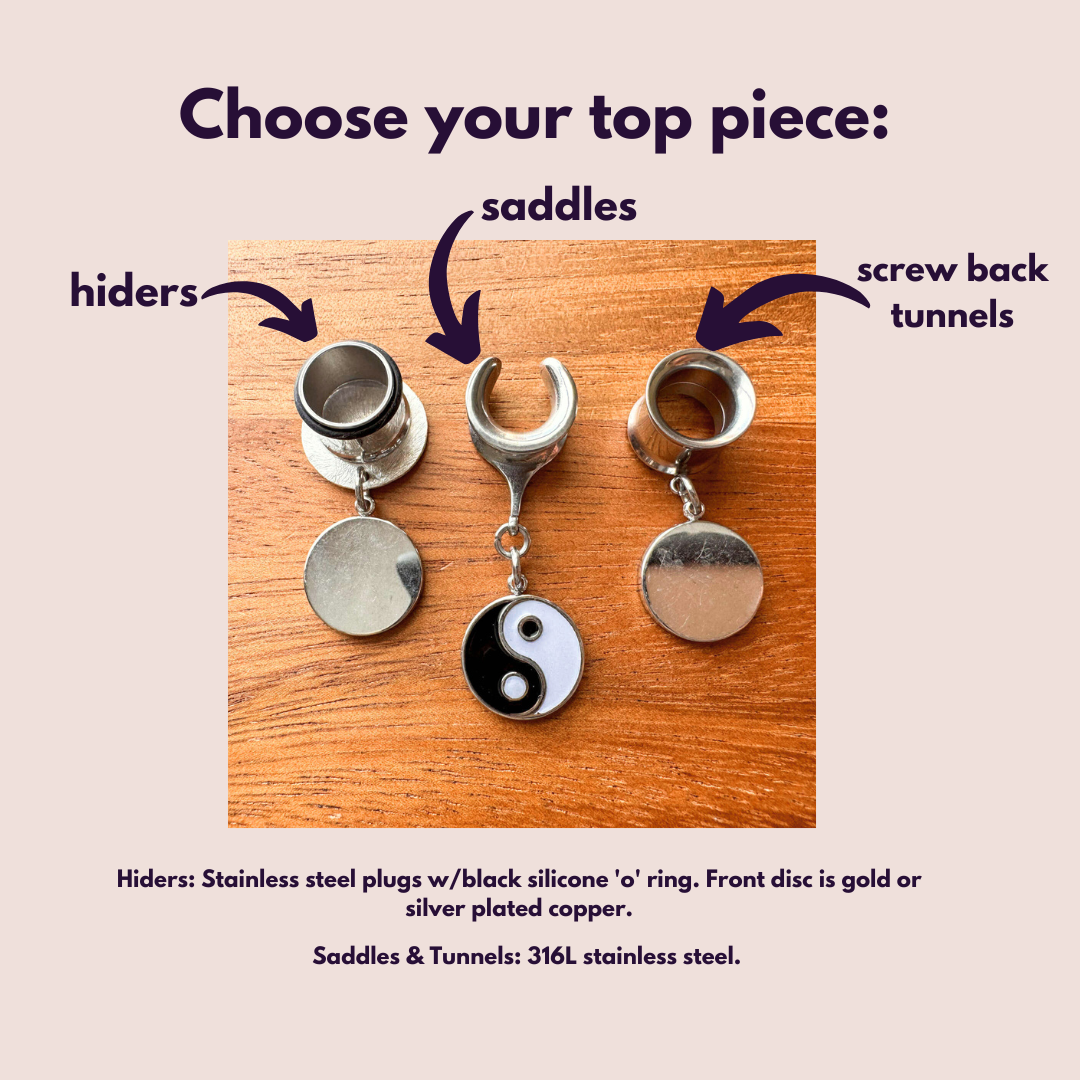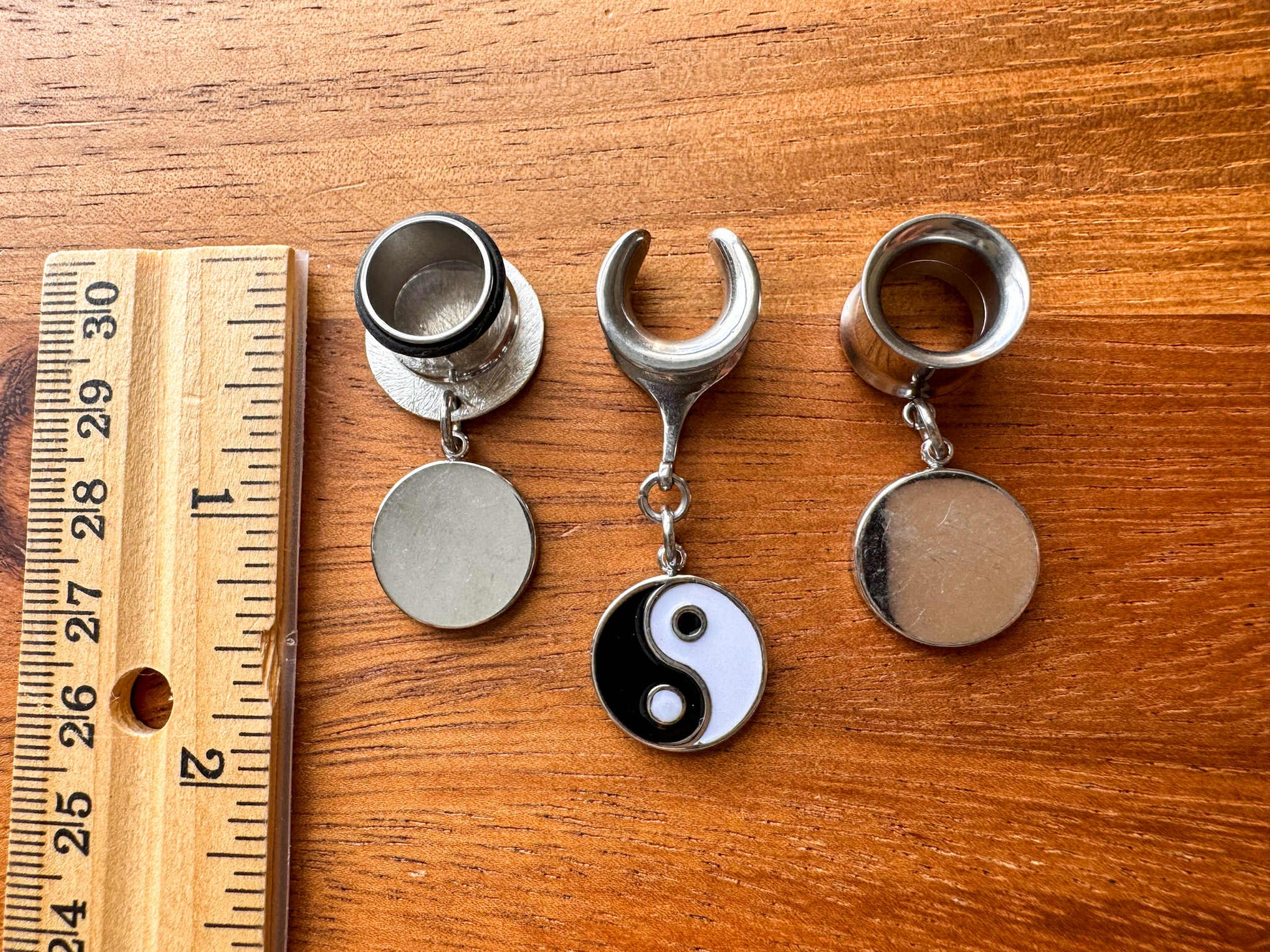 6g (4mm) - 1 5/16" (34mm) Y2K Yin Yang Saddles Dangle Earrings Gauges Plugs.